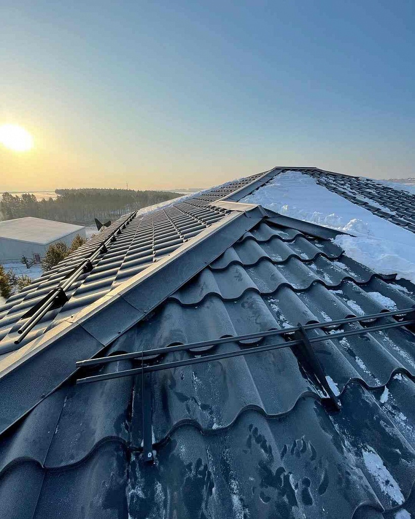Монтаж снегозадерживающих устройств производится после окончания монтажа кровельного покрытия. Однако их установка должна быть предусмотрена еще при выведении шаговой обрешетки. При использовании в качестве кровельного материала штучной керамической или цементно-песчаной черепицы монтаж снегозадержателей должен делаться непосредственно в процессе установки элементов кровли.